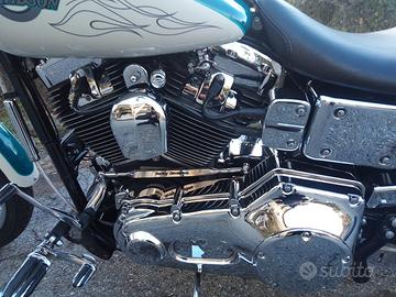 Vendo Harley-Davidson Dyna Wide Glide cilindrata 1450 a carburatore anno 2000 bicolore originale, Moto iscritta Al registro storico a libretto, carica di accessori. Ammortizzatori progressive, sella,scarichi,filtro, pinze cromate, leve e commutatori cromati, coperchio primaria cromati, asta cambio cromata e altro. Batteria nuova, gomme nuove, tagliando fatto a maggio 2025, chilometri 48.000.