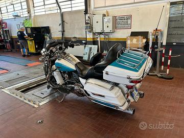 Vendo splendida Harley-Davidson Electra Glide Ultra Classic (FLHTCU) immatricolata il 29/06/2016. La moto è in condizioni eccellenti, sempre custodita in garage e curata con la massima attenzione. Questo esemplare si distingue per la rarissima ed elegante colorazione bicolore originale Crushed Ice Pearl / Frosted Teal Pearl, un classico intramontabile che non passa inosservato. Caratteristiche principali: Motore: High Output Twin Cam 103™ (1.690 cc) – potente e fluido. Chilometraggio: 35.000 km reali. Dotazione: Sistema Infotainment Boom!™ Box con impianto audio, Cruise Control, ABS e fari supplementari. Comfort Touring: Completa di Tour-Pak (bauletto posteriore) con portapacchi cromato e borse rigide laterali. Stato del veicolo: Pneumatici: 80% Manutenzione: Regolare. Revisione: Verrà consegnata con revisione ministeriale appena eseguita e valida per due anni. Moto pronta a partire per qualsiasi viaggio. Disponibile per visione e qualsiasi prova a Fano (PU). Prezzo: 20.500€ trattabili dopo visione. Contatto Nicola Romeo