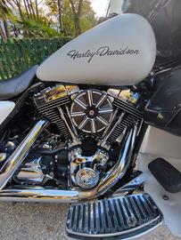 HD Electra glide 1450 del 2003 centenario ad iniezione bianco perlato opaco importata da Miami contachilometri in mph: ruota a raggi da 21', ammortizzatori posteriori regolabili, manubrio ape hanger, fari led, prolungamento borse e parafango posteriore, scarichi, filtro aria ecc. insieme ho anche tutti i pezzi originali. moto perfetta e bellissima adatta solo a veri appassionati.
