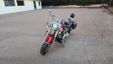 Vendo Harley Davidson Fat Boy cilindrata 1584, 6 marce, anno 2008, anniversario 105 anni, in colorazione Cherry Red, colore molto raro. La moto si presenta in ottime condizioni, senza graffi o ammaccature. Meccanicamente è perfetta, nessun lavoro da fare, appena fatto il tagliando, comprensivo di tutti gli olii e filtri, piu candele. Da poco sostituiti entrambi i pneumatici, pasticche anteriori e posteriori, compreso disco posteriore più i cuscinetti ruota. La lista degli accessori è lunghissima, scrivo una parte, per qualsiasi altra informazione chiamate. Manopole, pedali, leve, coperchio filtro, della kuriar king Fari supplementari Ammortizatore ad aria posteriore Scarico Magna Flow Sissy bar Porta pacchi Borsa in pelle Franco Cuoio Tappo serbatoio con serratura E altro. PREZZO 12000 EURO