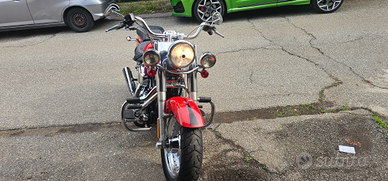 Vendo harley davidson fat boy anno 2010 cilindrata 1584 km 33300, munita di vari accessori, scarico 2 in 1 supertrapp tunderphone filtro screamin eagle, cavi candele performante, completa di cavi aeronautici ad alte prestazioni, kit di abbassamento posteriore kuriakyn che volendo si può togliere, retotreno cromato, para motore, radiatore dell'olio per farla riscaldare di meno, kit faretti anteriori più altri accessori di estetica come coperchio pompa olio freno posteriore. Copri puleggia cromato, copri cinghia cromato, prezzo leggermente trattabile, non scambio con altri veicoli solo con harley davidson street glide