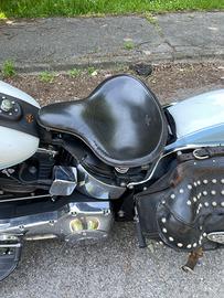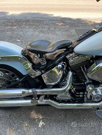 Harley Davidson FLSTF Fat Boy 1450cc carburatore le foto mostrano la moto allo stato attuale , nel prezzo sono disponibili carrozzeria del centenario (black/grey) faro anteriore e posteriore con indicatori cerchioni pieni anteriore e posteriore manubrio , sella completa , tutte le parti sono disponibili è perfettamente conservate per riportarla come in origine .