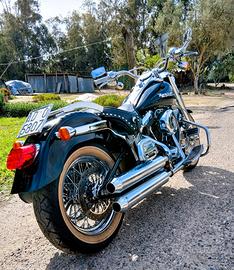 Road King FLHRI del 1997 con telaio softail omologato - motore nuovo con albero e pistoni con 2000 km - serbatoio nuovo allungato - marmitte bub - Ruote a raggi inox - doppio disco anteriore e dischi freno nuovi- pinze cromate HD - primaria e cambio revisionati - corona posteriore cromata - manubrio orginale fat boy - comandi cromati HD - cavi freno avio intrecciati cromati - parafango posteriore fat boy - carburatore e centralina nuovi - Parabrezza a sgancio rapido.Borsa laterale in pelle - cablaggio elettrico nuovo e originale HD - sella monoposto Lepera e sella originale biposto - portapacchi originale - MOTO PERFETTA INTROVABILE E GARANTITA UN ANNO . PERMUTO ANCHE CON MOTO O SCOOTER + CONGUAGLIO.