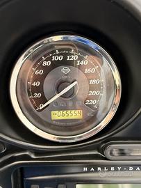 La moto è dotata di tour pak a sgancio rapido originale, ha collettori e terminali Vance & Hines, filtro aria sportivo, pedane di riposo su para motore.