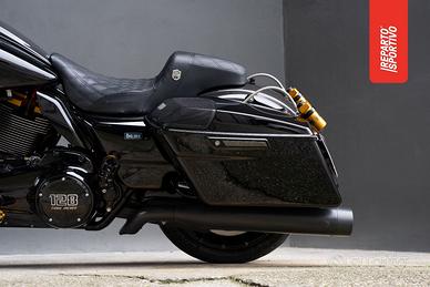 Modello di base Street Glide Special 114, completamente trasformata come da foto, provenienza italiana e omologata. Preparazione motore con montaggio kit 128 S&S (147cv a banco, disponibile grafico mappatura), avantreno rovesciato Rebuffini con pinze radiali Brembo con dischi maggiorati, stage 3 audio anteriore e posteriore (CVO), car play senza filo, sospensioni posteriori Ohlins, impianto di scarico completo Vance & Hines, parafanghi posteriori e anteriori in carbonio e numerosi altri interventi (specifiche su richiesta).