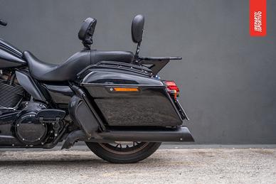 Motocicletta italiana, unico proprietario, molti accessori originali H-D installati: Kit fanali ausiliari ant., sella Touring con sissy bar per pilota, più passeggero a sgancio rapido con portapacchi aggiuntivo, linea scarico completa con collettori Vance&Hines e terminali Screamin' Eagle (linea scarico originale fornita a corredo).