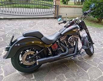 Harley-Davidson FLSTFB Softail Fatboy special (96ci-1584cc) imm. 09/2009 My 2010 colore black denim (nero opaco), unico proprietario, km 36700. Moto perfetta sotto ogni aspetto sia di carrozzeria che di meccanica, gomme Michelin 80%, stage 1 (scarico-filtro-centralina), impianto frenante anteriore maggiorato con disco da 320mm e pinza PM. Sempre tagliandata presso concessionaria HD-Bologna. Monta moltii acessori (Vance & Hines, HD-Genuine, Rebuffini, RSD, Arlen Ness, Discacciati, Performance Machine, Progressive Suspansion ecc.) disponibile a fornire lista completa. Disponibili ricambi originali (cerchi, scarichi ecc). Vendo per scarso utilizzo a euro 15900 (cifra leggermente trattabile previo contatto e visione) disponibili, a parte, borse Wild Hog HD Solo a sgancio rapido, sissy bar a sgancio rapido, portapacchi HD-Genuine, cupolino Bullet- Manphis Shades a sgancio rapido, sella badlander. Solo persone veramente interessate, no affaristi no perditempo non scambio con nulla. Disponibile a fornire qualsiasi info e chiarimento, offro e chiedo serietà. La moto verrà venduta con revisione di legge (fino al 2027) eseguita e bollo pagato fino al 2026.
