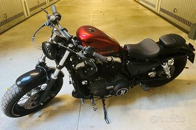 Vendo Harley Davidson Forty Eight 1200 anno 2015, per passaggio ad HD superiore . Km 41900 circa. Moto tenuta in maniera perfetta, sempre in box. Monta vari accessori: - scarichi MCJ - pedane old school - frecce enteriori e posteriori due in uno - griglia faro - paracalore neri - sissi bar - coperchio carter old school - manopole old school - puntale - tappo serbatoio a scomparsa Ovviamente al seguito tutti i pezzi originali. Solo due proprietari. Tagliandi effettuati da officina HD. Nessun lavoro da effettuare. Prezzo non trattabile, passaggio di proprietà a spese dell’acquirente.