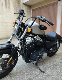monta un serbatoio rialzato più grande rispetto a quello di serie e verniciato trasparente come fosse grezzo (con qualche difetto sulla verniciatura) e un manubrio alto. Fornisco anche i pezzi per riportarla come fosse originale come il serbatoio nero che monta di serie.