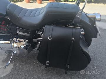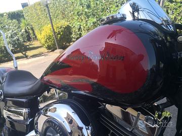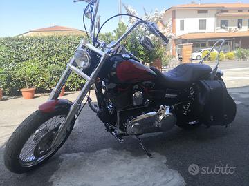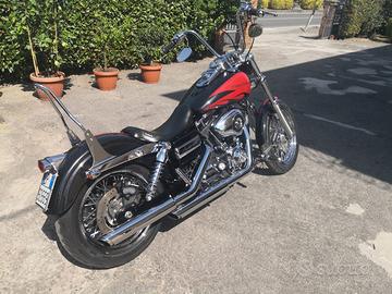 Harley Davidson FXDC dyna super glide anno 2010 1600cc circa 18.000 km originale nera presso Speed Shop. Riverniciata con colore personalizzato nero rosso e foglia argento. Comandi manubrio, manopole, poggiapiedi, frecce, faro posteriore e cablaggi tutti customizzati. Scarichi Vance & Hines, Ammortizzatori Progressive, Comandi Avanzati, Sissy bar, cablaggi allungati per istallazione manubrio ape hanger, sella doppia originale. Accessori da valutare a parte: Borsa laterale Custom Style Firenze nera, sella Le Pera Bare Bones sdoppiabile (doppia o mono), due manubri (originale più altro basso), coprimozzi cromati per ruote, tappo serbatoio con chiusura chiave, scarichi originali ancora imballati, comandi pedale intermedi originali, frecce e faro posteriore originale.