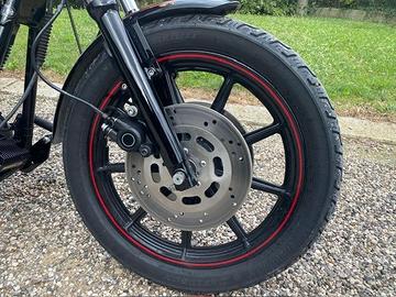Motocicletta in splendide condizioni completamente rifatta di recente. Verniciatura completa motore nero raggrinzente con smontaggio completo(non dipinto con motore inserito nella moto) e aggiornamento meccanica, albero camme, sostituzione puleggia posteriore(più piccola), verniciatura completa carrozzeria, cerchi(filetto rosso), gambali, ecc... Impianto elettrico nuovo con presa usb a manubrio. Super accessoriata: manubrio Chubbys, sissy bar con porta pacchi, fairing, filtro aria, borse originali Dyna T-Sport, ammortizzatori, accensione elettronica, sella, ecc..
