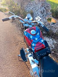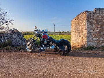 Moto custom Harley Davidson FXSTC 1340 del 1990, iscritta ASI,in stile californiano. Ottime condizioni e numerosi lavori eseguiti,batteria nuova dotato di scontrino di acquisto,pneumatici nuovi COBRA,ruote maggiorate 180 post 21 ant a canale largo trascritte a libretto,scarichi con aggiornamento Db soud trascritto a libretto, impianto frenante PM,forcellone posteriore maggiorato,spessoramento della puleggia con spessore,cambio di olio eseguito la scorsa settimana. La moto viene usata in maniera quotidiana. Si e' in possesso di solo fender posteriore tagliati da risaldare in caso si vuole ritornare all'origine.