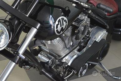 Pistoni alta compressione ,cambio 6 marce, primaria scoperta,motore cromato,gomma 330, frecce led, stop led,cambio disassato x equilibrio, faro, pedane, marmitte super trap, motore 2000cc, filtro e carburatore, IL SEGUITO ' MANIFATTURA: dischi cromati,disco e pinza unico, comandi p.m., cerchi ant da 23, tappo a scomparsa, decompressore x cilindri, cavalletto cromato, manopole p.m.,specchietti, bobbina revetec.