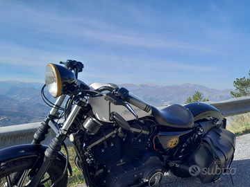 Harley davidson 883 iron anno 2009 con 50000 km,sempre tagliandata regolarmente,nessun problema di motore,batteria originale e regolatore di tensione appena cambiati...optional: kit per abbassare la moto con ammortizzatori ohlins(valore 700?),parafango anteriore e posteriore,marmitte originali,3 selle,frecce e luci originali...cambio gomme appena effettuata, ho montato le shinko 777 banda bianca,se volete altre foto chiedete....