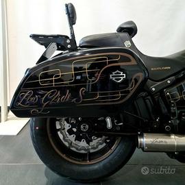 Moto in ottime condizioni. Accessori: Dischi freno a margherita Galfer anteriori e posteriore, Faro anteriore Baja Designs, Indicatori di direzione anteriori Baja Designs, Batwing dominator, Parabrezza fumè, Impianto stereo, Tappo serbatoio con chiave, Riser manubrio Trashin, Manubrio Trashin, Manopole Get a Grip, Barra Paramotore personalizzata, Sella Saddlemen SDC, Sissy bar e portapacchi a sgancio rapido, Stage 1 (Cassa filtro S&S, Scarico 2in1 AJKO, Mappatura centralina), Pedalini anteriori e posteriori Style Fat Bob, Faro posteriore fumè a led con indicatori di direzione integrati, Varnice personalizzata da Blaster, Portatarga inclinato, Borse Sportglide. Passaggio di proprietà a carico dell'acquirente. Garanzia concessionario 12 mesi. [Cod: 1322864-10831] [Veicolo: 395243]