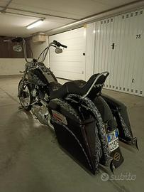 harley Davidson softail 1.6 modificata chicano , la moto e provvista di tutte le sue oarti originali smontate appena uscita dalla concessionaria , usata come moto dimostrativa , nel ranch harley di Trento . Poca strada percorsa . Le parti montate su questo esemplare sono molto costose , e per persone appassionate del settore , la livrea e stata fatta tutta a mano da professionista del settore . Moto