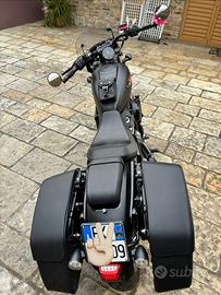 Borse in pelle con chiusura di sicurezza, scarico s&s, kit adversary, parabrezza fumé a sgancio rapido, tank bag Ends cuoio.