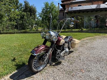 Basamento Panhead STD,Volani, bielle, pistoni, cilindri s&s,Albero di trasmissione Jims,Teste e coperchi bilancieri originali shovelhead,Carburatore s&s super E Tubi freni nuovi, Cavo frizione e dischi frizione Barnett,Cambio 4 marce Ratchet top revtech,Coperchio kick heavy duty,Carter primaria interno originale Panhead rarissimo, Primaria a cinghia,Avviamento elettrico più kickstart,Serbatoi 5 galloni,Verniciatura e pinstripe di "Blaster",Cerchi big spoke 16 post. 21 ant.Sella Lepera biposto,Immatricolata come esemplare unicoRevisione appena eseguita Moto in conto vendita ma si valuta ritiro di solo moto anche non H-D vedi: Knucklehead - Flathead - Shovelhead - Evolution - Sportster - Dyna - Softail - Electra - Buell - Fxr - Road King - Shovel - Panhead - Knuck - Ironhead - Pan - Springer - Panshovel - Earlyshovel - Gennyshovel - Panamerica - Street Glide - Road Glide