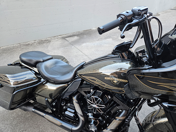 Harley Davidson Road glide 103 anno 2016 tenuta maniacalmente perfetta , tagliandata e gommata a maggio 2025,monta i seguenti accessori: scarichi MCJ completi di collettori personalizzati con il colore della moto filtro e centralina Screamin Eagle, sella cvo completa, frecce anteriori fume' a led,gancio rapido ,sistema audio Rockford fosgate, include tutti i pezzi originali ...Contattare solo se realmente interessati...non faccio scambio con altri modelli o moto..grazie.