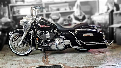 Splendida Harley Davidson Road King 1340 in stile Chicano. Ruota anteriore maggiorata, ammortizzatori posteriori ad aria con compressore. Lunga lista di personalizzazioni e dettagli che la rendono unica.