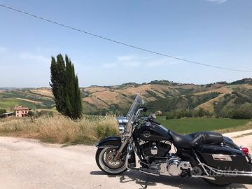Vendo Harley Davidson Road King Classic FLHRC con motore TC96 sempre tagliandata presso concessionaria Harley Davidson ufficiale, condizioni perfette. Tagliando e cambio gomme appena fatti. In dotazione sella originale e sella monoposto, 2 scarichi, borse originali, borse rigide, tour pack. Oltre 10000 euro di accessori. Prezzo non trattabile