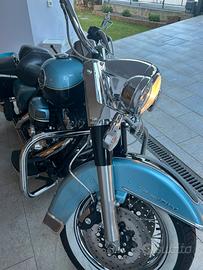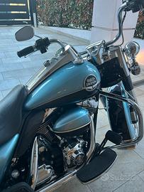 vendo per inutilizzo bellissima Road King Classic 02/2008 con 37.300 Km. Moto tenuta sempre in garage con leggeri segni di usura dovuti all’età,monta scarico oval vance hines e filtro vance hines,tubi in treccia e frecce bianche,dispongo di tutte le parti originali piu sissy bar,paranrezza e portapacchi a sgancio rapido. Sospensioni ad aria regolabili anche in movimento. Astenersi perditempo Prezzo leggermente trattabile