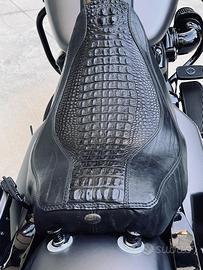 industrial gray, 7.850 km, Screamin' Eagle Stage 4 (114), scarichi omologati Screamin' Eagle, filtro e cavi candela Screamin' Eagle, ammortizzatori Ohlins, cerchio anteriore da 17" a libretto, sella (+ cuscino passeggero) in alligatore Wild Hog, strumento multifunzione optional H-D, manubrio CVO, specchietti H-D "dome", borse interne H-D. Inoltre sella originale + sella Le Pera e manubrio originale. Tenuta in maniera maniacale, perfetta.