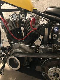 Motore shovelhead 1340 a libretto revisionato nel 2019, ad oggi percorsi poco più di 1000 km, imbiellaggio con cuscinetti nuovi eseguito da officina specializzata,cilindri rettificati,pistoni nuovi, pompa dell'olio e punterie idrauliche nuove, il tutto alimentato da uno splendido carburatore SU.
