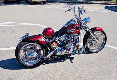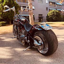 Vendo softail anno 2000 twin cam con innumerevoli modifiche! Motore con 8900km full sceamin eagle(103pollici) carburatore mikuni hsr 48, primaria scoperta bdl,scarico 2/1 in titanio,gomma posteriore 250 omologata,sospensioni ad aria frizione idraulica,pompe freno frizione radiali,doppio disco anteriore con pinze radiale e tanto altro! MOTO UNICA! prezzo impegnativo ma vi assicuro che ne vale molti dipiu! Vendo perche ho 3 moto e non la uso piu!