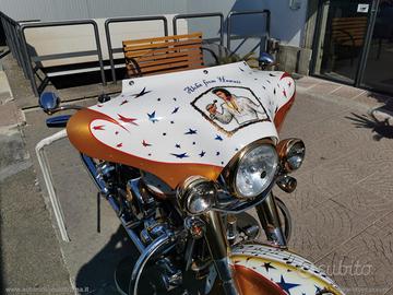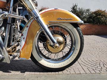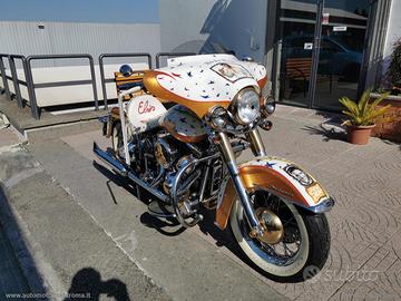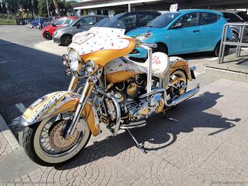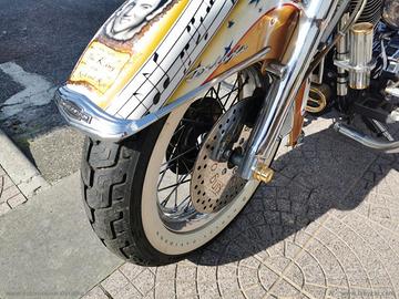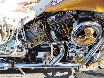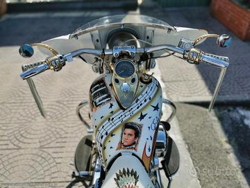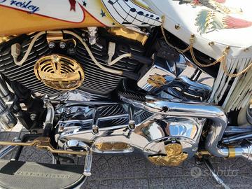 Con: cambio manuale a 5 rapporti, Carburatori Mikuni + centralina gestione anticipi, accensione a pedale, casse stereo originali Harley, scarico Fishtale, parti ricavati dal pieno bagnati d'oro, kit luci e Led, batt wing, paramotore, cavalletto centrale, doppia sella in pelle, fregi placcati d'oro, dischi freno con richiami, cerchi a raggi.