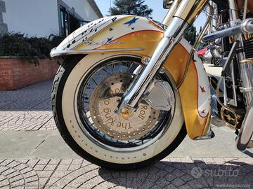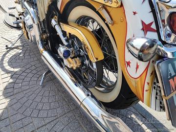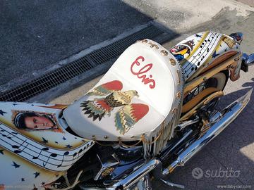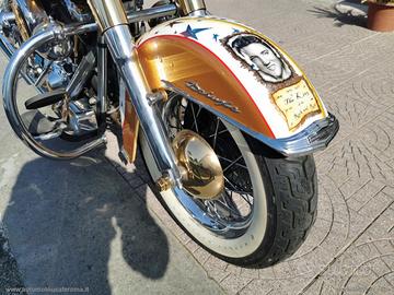 Con: cambio manuale a 5 rapporti, Carburatori Mikuni + centralina gestione anticipi, accensione a pedale, casse stereo originali Harley, scarico Fishtale, parti ricavati dal pieno bagnati d'oro, kit luci e Led, batt wing, paramotore, cavalletto centrale, doppia sella in pelle, fregi placcati d'oro, dischi freno con richiami, cerchi a raggi.
