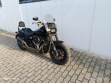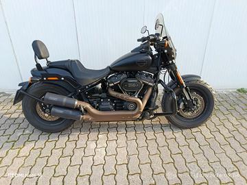 Bellissima Fat Bob FXFBS, anno 2019, in colorazione nero lucido, moto dal carattere deciso e dalla guida sportiva, riconoscibile per il suo design muscoloso e aggressivo. Esemplare super accessoriato, tenuto con grande cura.