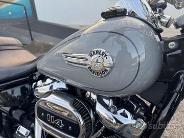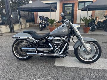 Estensione di garanzia fino al 2028 per questa Bellissima Softail Fat Boy dal colore originale Hd billiard Gray, con bordatura antracite , soltanto 3500 km, unico proprietario, molti accessori tra cui scarico s&s , targa laterale, centralina.