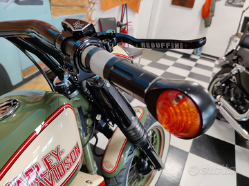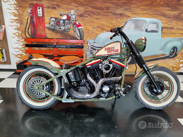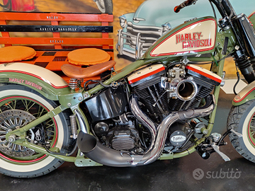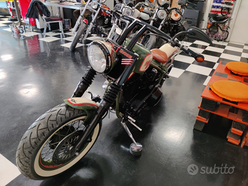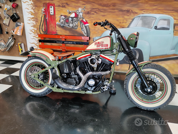 Harley Davidson Softail Fat Boy 1340 del 1996 customizzata con gusto dalla T-Custom Viterbo. Moto bellissima, carburatore Mikuni da 42 a trombetta, freni e pinse Wilwood, leve freno - frizione, pedane Rebuffini, manubrio T-Bar con frecce incorporate, scarico Paul Yaffe, cavalletto Rebuffini, tappo olio Cult, sella a molle. Colorazione realizzata artigianalmente.