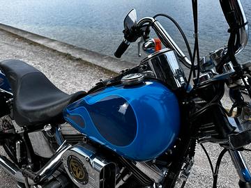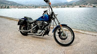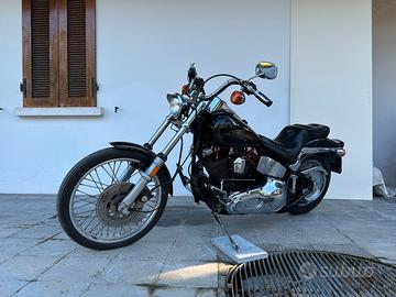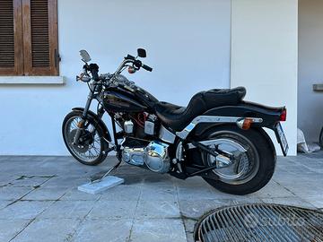 Vendo HD Softail 1340 del 1990 per cui a carburatori. La moto si presenta attualmente in configurazione quasi totalmente originale ad eccezione dell'impianto di scarico e del filtro aria. La moto è stata importata circa 8 anni fa e omologata in questa configurazione per cui anche gli scarichi sono in regola. Insieme cedo svariati accessori compreso il filtro aria originale. Cedo anche tutta la carrozzeria in versione "fiamme" compreso manubrio ape hangar da 12 pollici e sella Badlander originale.