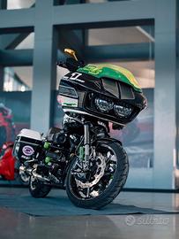Harley Davidson Road Glide CVO 113r special mod2013 completamente aggiornata 2022, full custom sostituito praticamente tutto, motore screamin eagle 113r zippers montato da nota officina specializzata hd ed attualmente con circa 18000km (tutto riscontrabile), frizione barnet scorpion, pompa maggiorata, cames zippers, crash bar paramotore, forcellone con capriata di rinforzo e verniciatura al magnesio, s.e. a gas posteriori regolabili e avantreno pressurizzato showa performance, pinze e pompe radiali brembo rcs magnesio, dischi flottanti post ed ant da 330', filtro HP e centralina power vision , bancata, e con selezione mappe regolabili ecc, stereo sony nuovo doppio din con navigatore, mp3, bloututh, ecc., scarico collettori race v&h competition series con terminale protech, sella saddleman gel, riser e manubrio trashin, parafanghi carbonio, best performance bagger twincam 2025 al EternalCityMotoShow di Roma