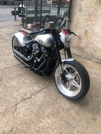 Harley Davidson FLSB 2018 con 18000 Km in argento con strisce rosse, conversione Rick's 300, cerchi speciali, sospensioni pneumatiche Legend Air, scarico Kesstech, serbatoio Kodlin, manubri clip-on HD, indicatori di direzione Kellermann, tachimetro Motogadget, filtro aria CVO Screamin Eagle, emblemi originali sul serbatoio CVO, batteria e tagliando nuovi. La moto verrà importata prossimamente dalla Svizzera (masseria) e collaudata in Italia, documentazione completa.