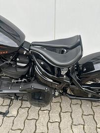 Bellissima Street Bob 114 FXBBS, una vera opera d'arte in stile bobber, completamente customizzata ad hoc per ottenere una moto unica nel suo genere. La colorazione nera e arancio con numero 1 la rende una delle Street Bob più scenografiche e ricercate mai realizzate, perfetta per chi vuole distinguersi senza compromessi.