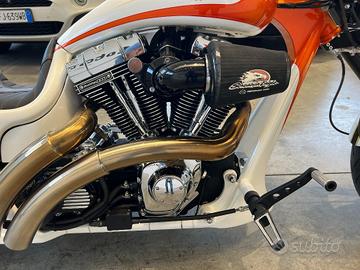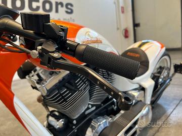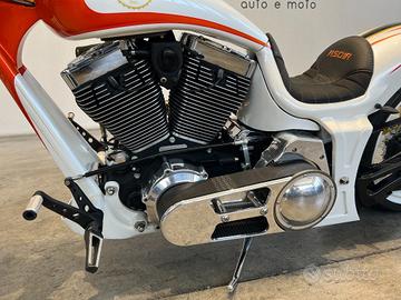 MOTO MUSCLE BIKE SPECIAL, ESEMPLARE UNICO, COMPLETAMENTE OMOLOGATA IN PERFETTE CONDIZIONI COSTRUITA CON COMPONENTISTICA THUNDERBIKE, DISPONIBILE TUTTO IL CORREDO DELLE CERTIFICAZIONI TUV MOTORE HARELY DAVISDON C.V.O SCREAMIN EAGLE 110 COSTO TOTALE DEL OPERA OLTRE 70.000 EURO TRA COMPONENTISTICA E MANODOPERA ACCESSORIATA CON: - MOTORE SCREAMIN EAGLE C.V.O. 110 - TELAIO THANDERBIKE - PARAFANGO POSTERIORE THANDERBIKE - AVANTRENO THUNDERBIKE - FORECLLA POSTERIORE ALLARGATA THANDERBIKE - SOSPENSIONI PNEUMATICHE REGOLABILI - PRIMARIA APERTA - DOPPIO DISCO ANTERIORE A MARGHERITA CON PINZE RADIALI - SCARICHI BSL "HOT SHOT PIPES" - GOMMA POSTERIORE DA 280 OMOLOGATA - PORTATARGA LATERALE - SELLA SOLO IN PELLE RICAMATA A MANO - VERNICIATURA PROFESSIONALE DAL COSTO DI 5.000 EURO - PEDANE AVANZATE RICAVATE DAL PIENO - BATTERIA AL LITIO NUOVA - PULSANTERIA MOTOGADGET CON CAVI PASSANTI AL INTERNO DEL MANUBRIO - CERCHI SCOMPNIBILI - FILTRO ARIA SCREAMIN EAGLE - CONTACHILOMETRI MOTOGADGET - MANOPOLOE ANTISCIVOLO RACING SERIES - LEVE FRENO FRIZIONE RACING SERIES IN ERGAL RICAVATE DAL PIENO PIU CHE UNA MOTO E' UN OPERA D'ARTE PER VERI APPASSIONATI, UNICA NEL SUO GENERE. SI POSSONO TROVARE MAGGIORI FOTO IN ALTA DEFINIZIONE SUL NOSTRO SITO AKMOTORS.IT ************************ 1)ACCETTIAMO PERMUTE: sul nostro sito www.akmotors.it puoi richiedere un valutazione del tuo usato in modo semplice e preciso. In giornata avrete la nostra migliore valutazione. 2)RITIRO DEL VEICOLO IN 1 ORA: Passaggio immediato presso la nostra sede - Ricevimento clienti da stazione ferroviaria di Parma 3)POSSIBILITA' DI PROVA SU STRADA 4)POSSIBILITA' DI FAR VISIONARE L'AUTO/MOTO DA UNO SPECIALISTA DI FIDUCIA 5)Tutti i nostri veicolo sono visibili SU APPUNTAMENTO -------------------------------- La dotazione tecnica e gli optionals potrebbero in alcuni casi differire dall'effettivo equi
