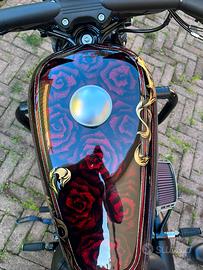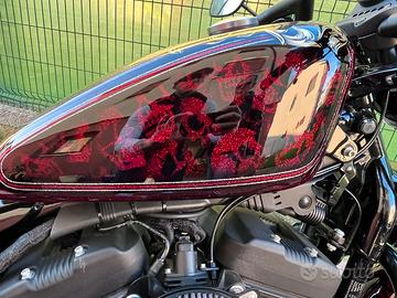 Vendo Harley Davidson Sporster 1200 Iron del 2018 tenuta maniacalmente ,sempre in garage, con ABS, schienale passeggero sgancio rapido ricamato aggiuntivo, para motore, filtro Vance and Hines, centralina aggiuntiva Fuelpak FP3 collegabile da telefono ,manubrio mini ape , pedane avanzate appena montate. Verniciatura eseguita da 70's Helmets. Dispongo anche di filtro originale HD ,cupolino anteriore nero e manubrio Z bar Moto in perfette condizioni pronta per partire, nessun lavoro da fare ,prezzo trattabile dopo visione. Tag: Custom rebel vulcan dragstar honda indian Kawasaki