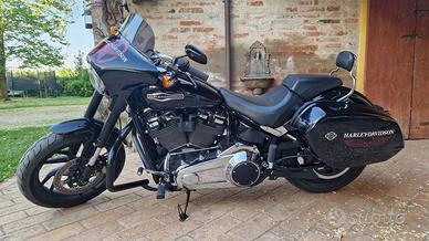 Vendo H-D 107 Sport Glide Softail FLSB di Aprile 2018 con 14.000Km. Moto perfetta, revisione appena fatta, sempre tagliandata dalla Harley. Effettuato in casa madre aggiornamento Stage 2, modifiche estetiche "black" su cerchi, paracalore scarico, forcelle. Batwind e borse laterali rigide tinta carrozzeria rimovibili con aggancio rapido. Accessoriata di Sissy bar e Bauletto medium su portapacchi entrambe ad aggancio rapido. Vendo insieme alla moto terminale di scarico originale, terminale Sreamin Eagle e terminale e terminale Rinehart racing; mantenitore di carica, borse interne travel-pack per bauletti laterali ed altri accessori. Prezzo non trattabile. No affaristi o perditempo