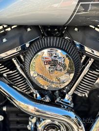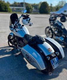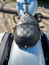 Molti accessori tra cui manopole Edge Cut, sella artigianale, sissy bar e portapacchi HD, Cupolino maggiorato Road Warrior, Derby cover, riser.