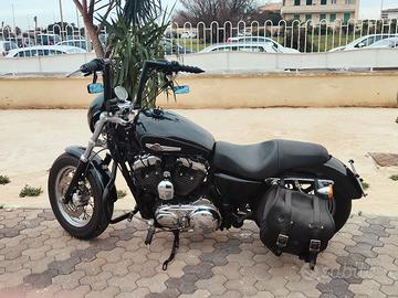 Bella e curata Harley Davidson 1200 c del 07/2012 sempre tagliandata. Ho tutti gli originali più due manubri e qualche altro bell'oggetto preso hai raduni. Borsone originale. Poggia schiena originale Harley e un altra sella due posti molto comoda per viaggiare; tutto compreso. Da poco cambiato ruota davanti e pasticche freni batteria nuova. il prezzo è trattabile ma con rispetto.