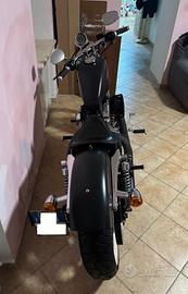 marmitte shorts nere, manubrio drag bar, manopole renthal rsd, coprifiltro rsd, sella anteriore in pelle, sellino posteriore in pelle