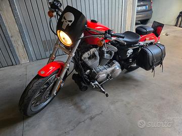 Harley Davidson Sportster 883 Low 2010, condizioni pari al nuovo, circa 10000 km, numerosi accessori tra cui doppie borse originali The Bison con relativi telaini originali porta borse, pedane avanzate, pedane passeggero, sella singola più sella passeggero, cupolino, manubrio fly bar, cuffia serbatoio, scarichi Khrome Werks tapered, tappo serbatoio skull, ecc.. Prezzo Non trattabile escluso passaggio di proprietà.
