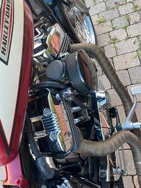 Come da titolo vendo la mia harley davidson sportster custom del 2005 a carburatore la vera harley!! Diverse modifiche come da foto, appena tagliandata e revisionata batteria nuova originale USA carburatore revisionato con kit spillo e guarnizioni tutte nuove,manopole nuove ( in foto sono marroni adesso sono nere) filtro aria muovo soffietti forche nuovi, bende marmitta Vance Hines 2in1, serbatoio sportster roadster color cherry red (introvabile).Stupenda e pronta per partire. Ho anche un sellino a ventosa per il passeggero aftermarket un faro, una sella doppia ( quella in foto).