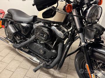 Harley Davidson XL1200X Forty Eight anno 01/2015 km 100.000 sempre tagliandata presso concessionaria ufficiale HD (dimostrabile con libretto tagliandi e fatture), frizione già fatta a 85.000km, gomme con 4000km. Accessoriata con: mantenitore batteria originale HD, Bartubeless (per montare gomme senza camera d’aria), scarichi Khrome Werks, bende termiche su collettori, centralina (arricchit miscela per far scaldare meno il motore), borsa WesternBull, borsa piccola WesternBull lato destro, barilotto anteriore. Sella biposto Panebianco, Sissy bar sgancio rapido, griglia faro con lampada Led, clacson tipo Softail, ammortizzatori Progressive neri, tappo serbatoio con serratura chiave, fodero personalizzato serbatoio. Dispongo di tutti i pezzi oginiale (sella, sellino passeggero, scarichi, copricollettori, ammortizzatori, tappo serbatoio..) Prezzo €13500