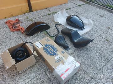 Vendo harley davidson street bob modello 107 motore 1750 praticamente usata pochissimo soli 8000km unicoproprietario tagliandata harley,moto piena di accessori tra cui scarico omologato,doppio serbatoio,doppia sella,doppio manubrio,borsa in cuoio laterale,praticamente due moto in una nera lucido originale oppure castomizzata verde opaco e bronzo,vendo con tutti gli accessori originali!