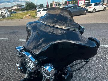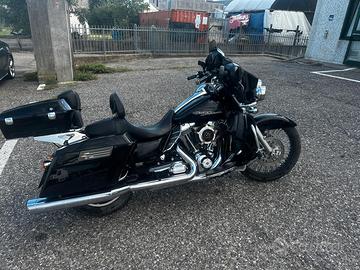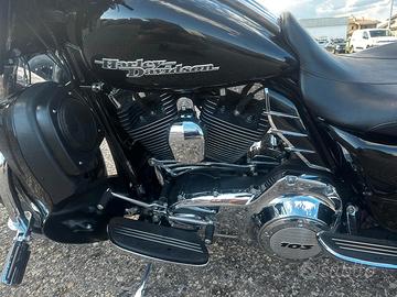 Harley Davidson Street Glide anno 2013 con 44.000 km, ultimo tagliando fatto a 42.000 km, gomme al 70% e trattamento nano tecnologico. La moto è fornita di stage 1 terminali, filtro e centralina; sospensioni posteriori Ohlins per un maggiore comfort di guida; sostituzione radio con modello Acquatic; navigatore Garmin; luci led colorate azionabili da telecomando; cerchio anteriore in lega con raggi maggiorati; fari di profondità aggiuntivi; tour pack; pedane passeggero maggiorate; poggiaschiena e altri accessori cromati. La moto esteticamente assomiglia alla Electra Glide grazie a tutti gli accessori presenti. Fornisco anche le parti originali.