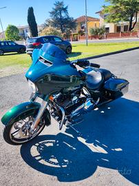 Vendo stupenda Harley Davidson Street Glide 103" del 2015 con circa15000 km, stupendo colore Deep Jade Pearl, pochi esemplari, gomme cambiate da circa 1000 km, scarichi e collettori Vance & Hines, centralina Fuelpack con collegamento bluetooth al telefono, manubrio da 12", schienalino e portapacchi a sgancio rapido. Disponibile anche sella singola con portapacchi al posto del passeggero.